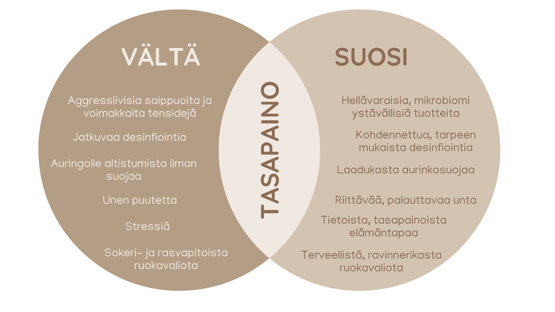 Mikrobiomisi tarvitsee kolme asiaa: lempeää hoitoa, oikeita ravintoaineita ja tasapainoista elämäntapaa. Kun nämä ovat kunnossa, ihon ekosysteemi voi toimia parhaalla mahdollisella tavalla.